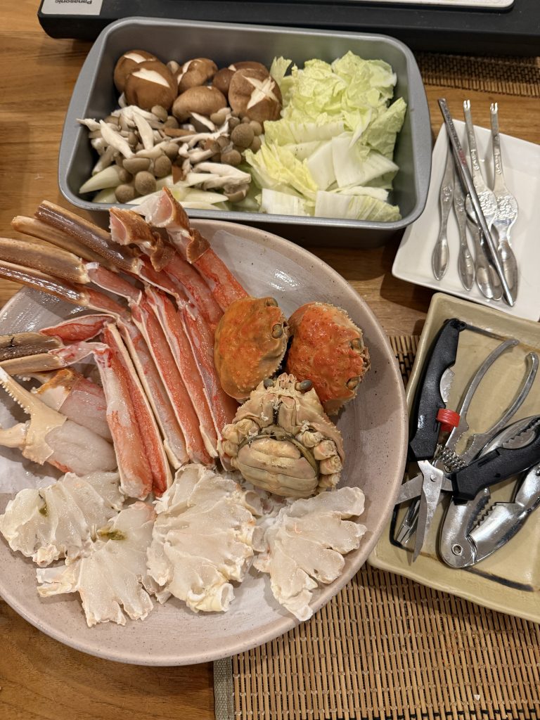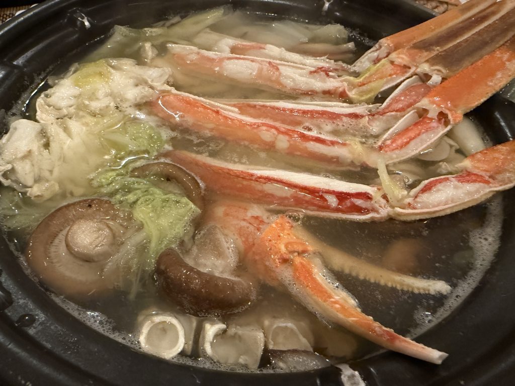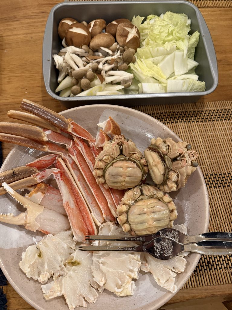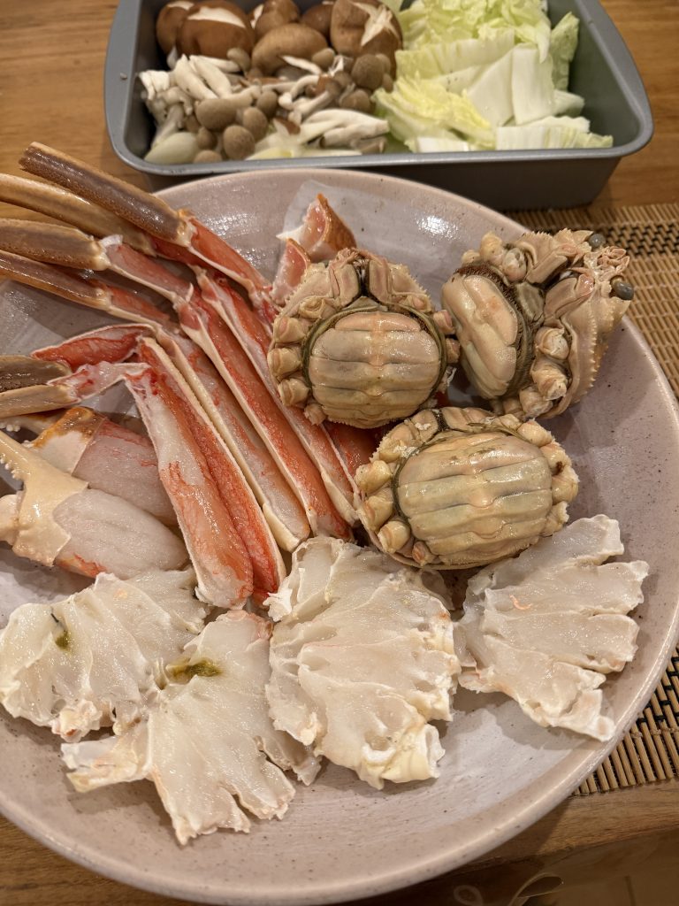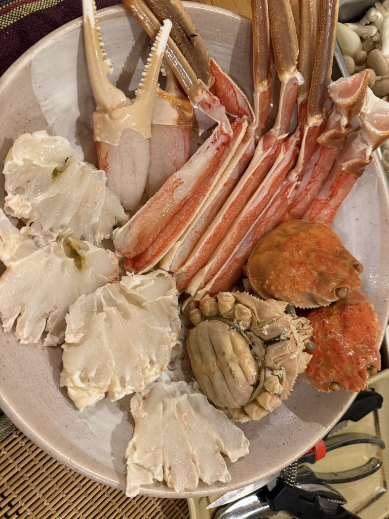 昨日のセイコ蟹に続き、カットされた生ずわい蟹をしゃぶしゃぶ風の鍋で食べました。美味しゅうございました😋