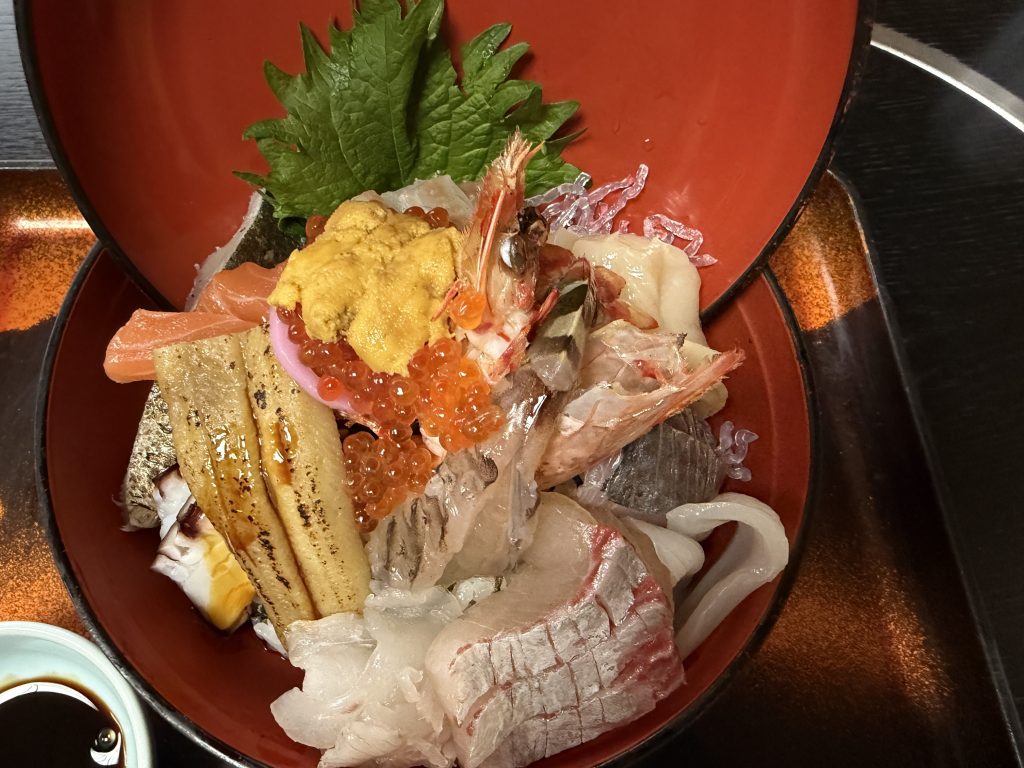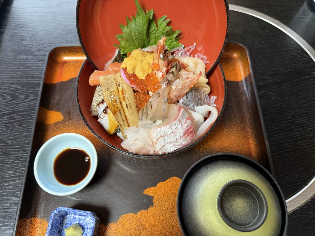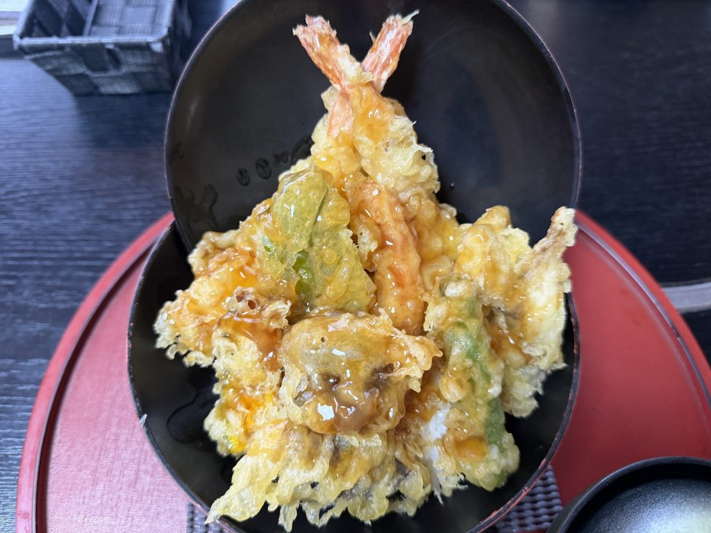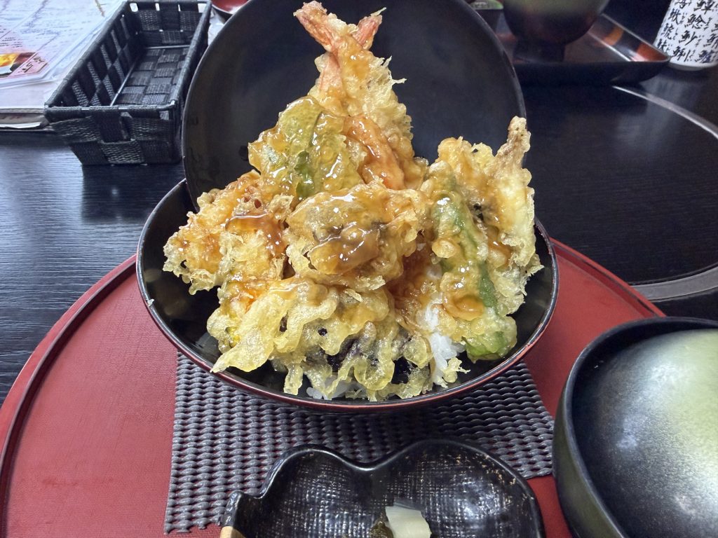 ばあちゃんは、上海鮮丼を注文し、僕は海老天丼を注文しました。