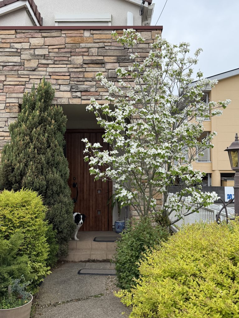 そして玄関のハナミズキ。この後、花びらが散ってご近所に迷惑じゃ無いかと、気になるけど😓