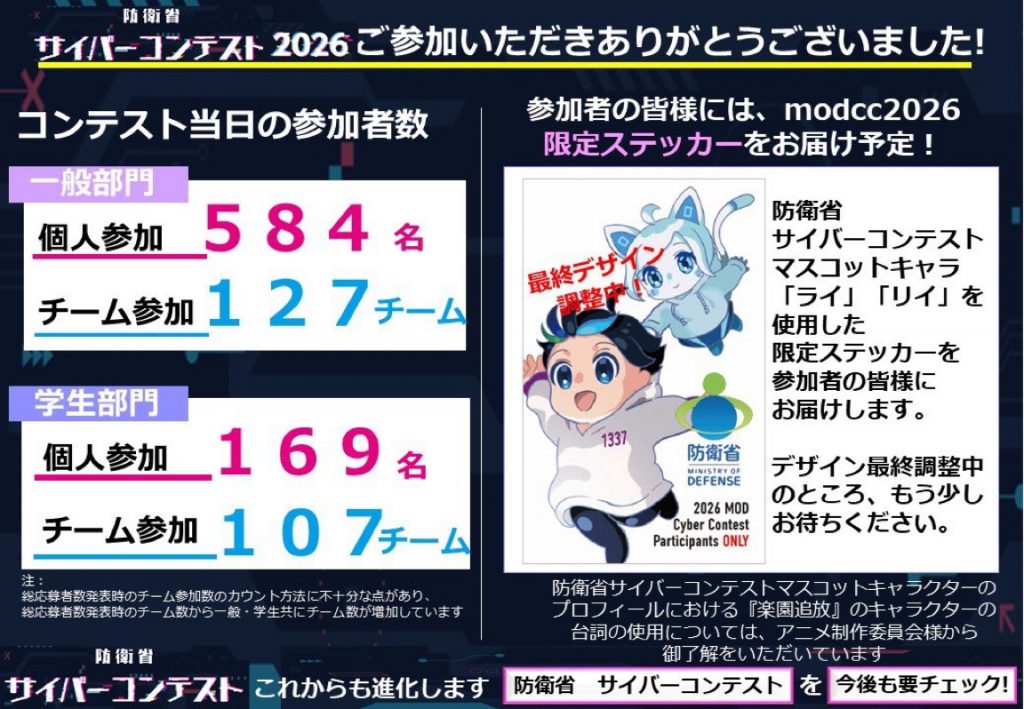 今年も例年通り、防衛省のサイバーコンテストに参加しました。