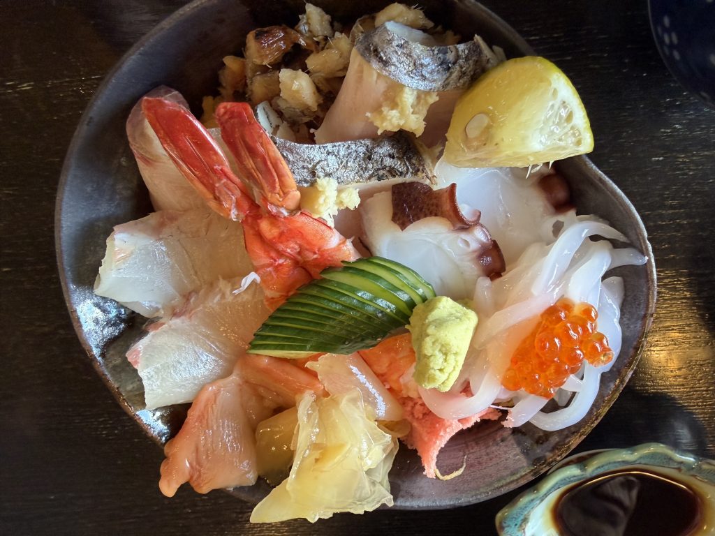 道の駅向いにある「かわい寿し」でお食事、僕は「穴子丼」、ばあちゃんは「海鮮丼」の並でした。
