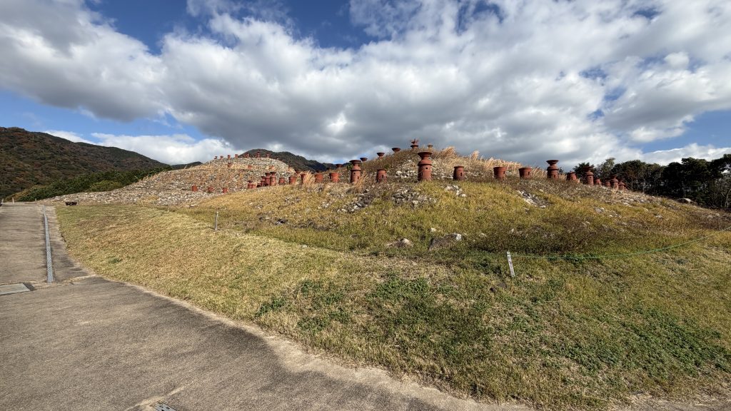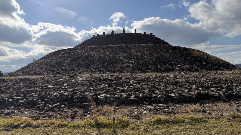 そして、いつか立ち寄ろうと思っていた柳井市の「茶臼山古墳」に立ち寄った。ここは自分が柳井市で勤務していた時から整備が始まって、その数年後に完成していたんだけど、それから随分と経つけど行くことができなかった場所。90mの大きさがあるとのことで、ちょっとした小山です。その大きさに驚いてしまった。